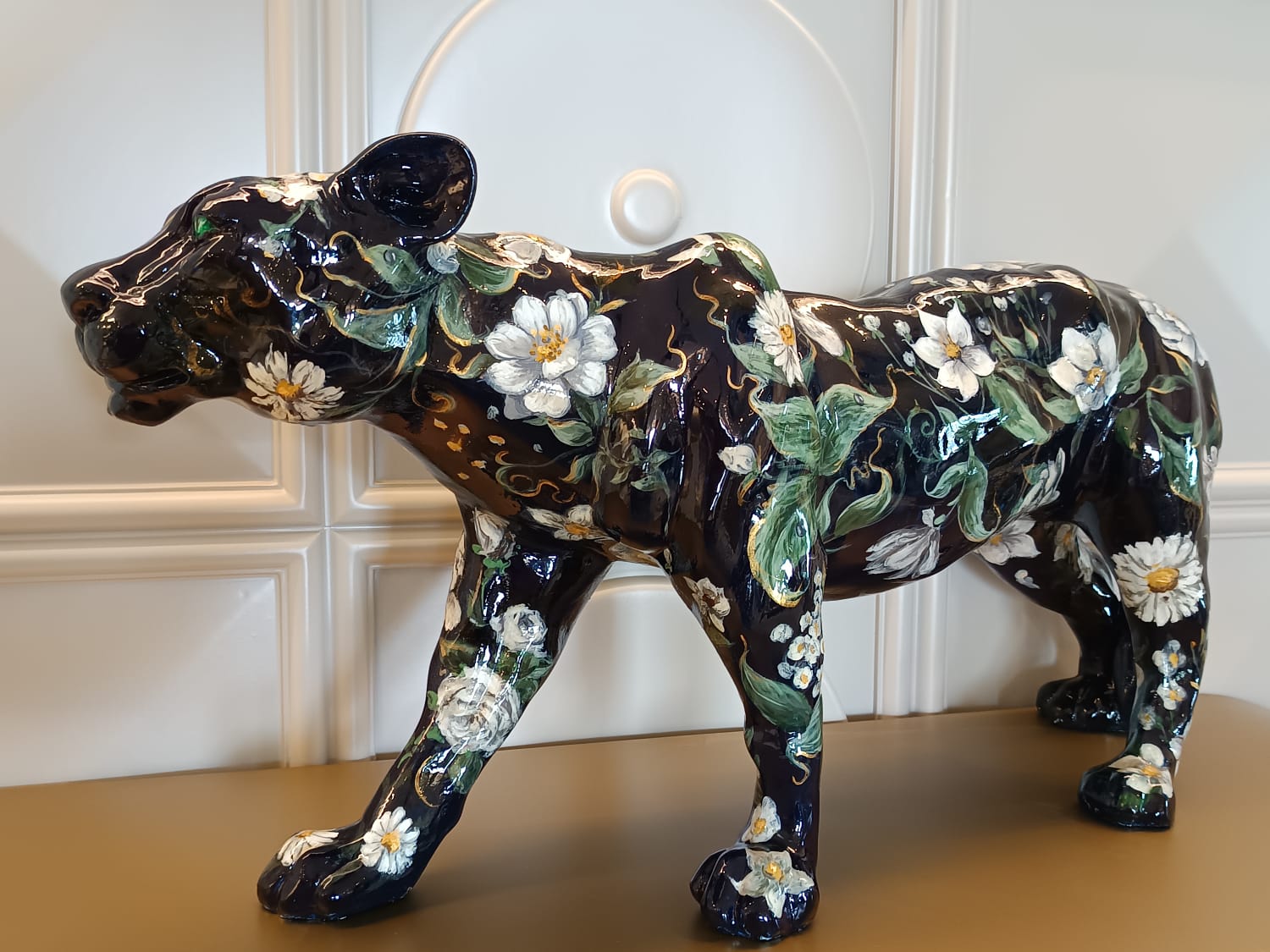 Discover the enchanting fusion of wildlife and flora in ‘Floral Majesty’! This stunning art piece features a majestic black panther gracefully adorned with delicate natural flowers and leaves, creating a harmonious blend of strength and beauty. The intricate details and the serene expression of the panther invite you to pause and appreciate the wonders of the natural world.