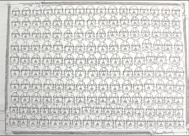 This detailed composition depicts repeated human faces arranged in a structured grid, symbolizing global unity and collective consciousness. The artwork reflects the interconnected nature of modern society, where individual identities come together to form a shared human network.