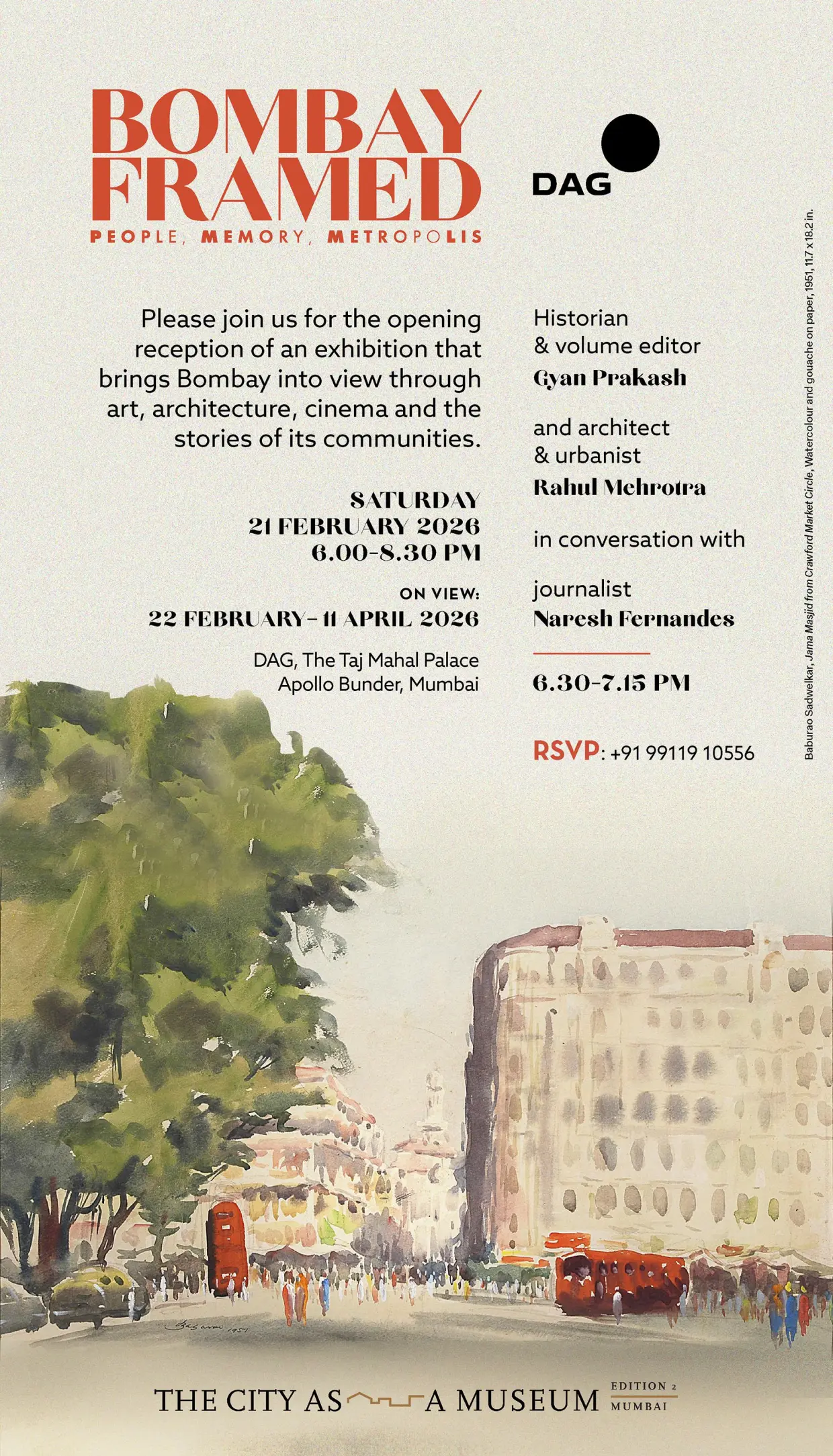 Located inside the iconic The Taj Mahal Palace, DAG presents Bombay Framed, a compelling group exhibition that explores the evolving identity of Mumbai through art and history.