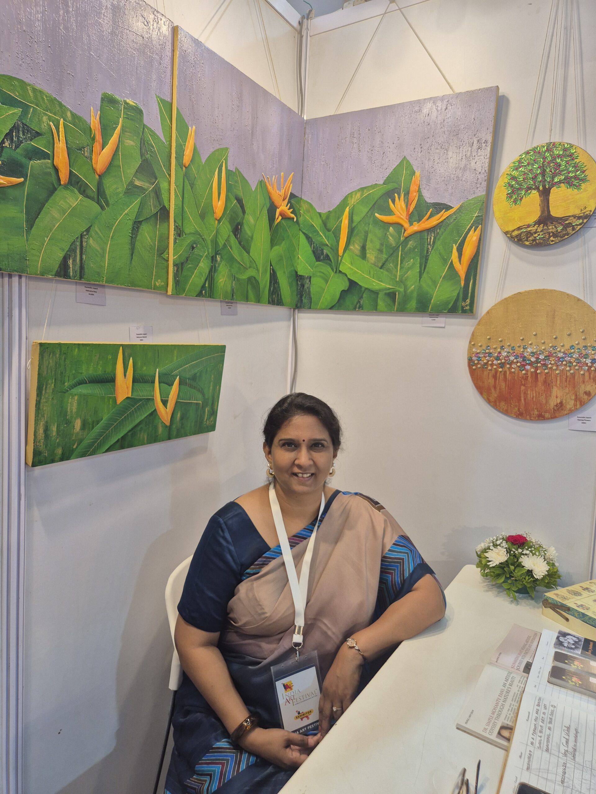 Sunandini Jayant’s artistic journey is rooted in practice and experience, both of which have shaped her growth and deepened her joy in creating art. While not entirely self-taught, she acknowledges the guidance of mentors who nurtured her talent from a young age. She has explored a wide range of mediums including watercolours, oils, acrylics, and fabric painting, as well as diverse styles from tribal to classical art forms. By blending techniques and traditions, she often creates something uniquely her own. For her, art is not just a practice but a form of prayer, meditation, and a way of experiencing the world.