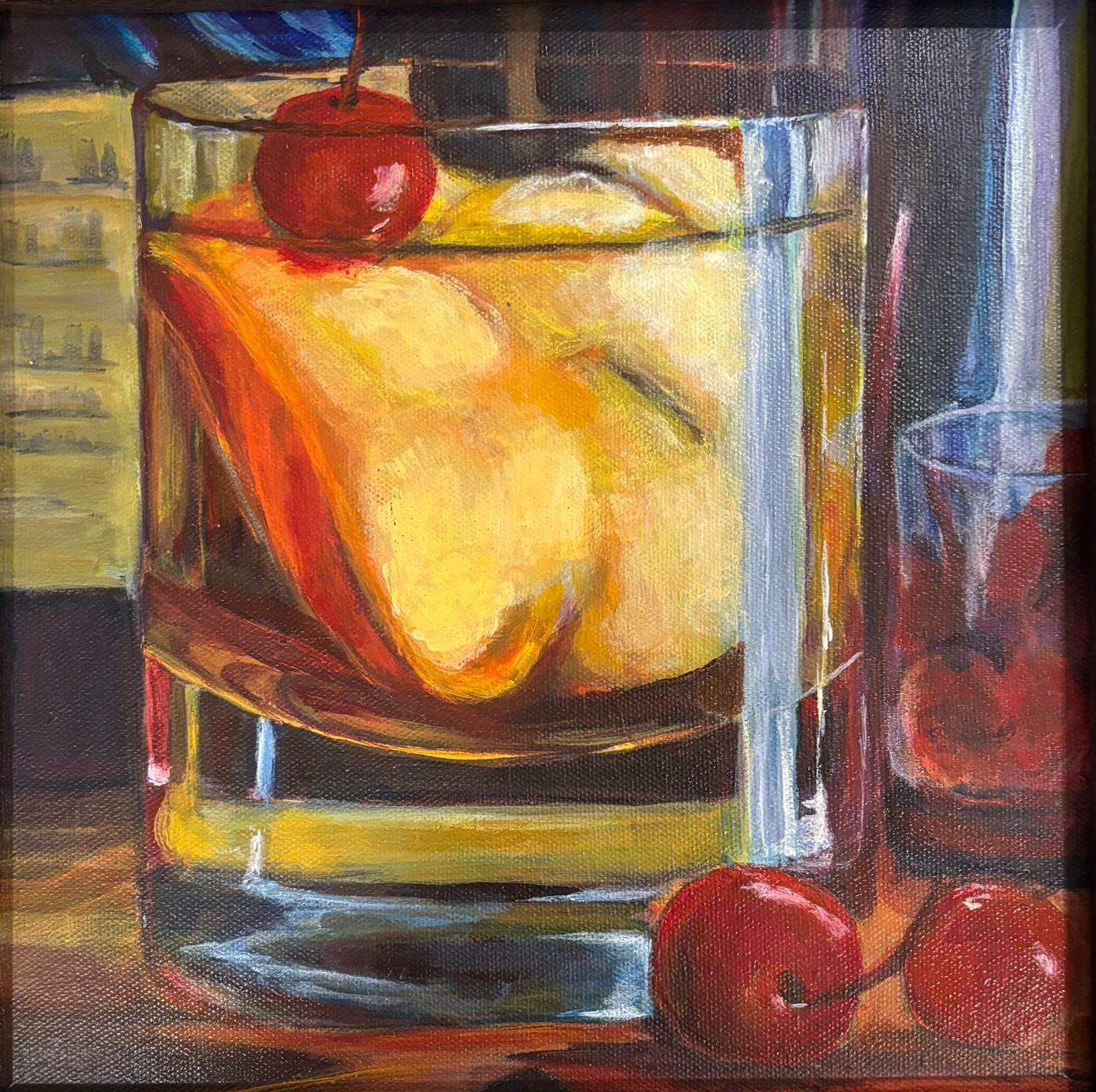 Impressionistic style cocktail series that captures the translucency of the drink and glint of the ice with acrylic paints and bold brush strokes for boho vibe to brighten up that cozy corner of your home or a cafe/bar.