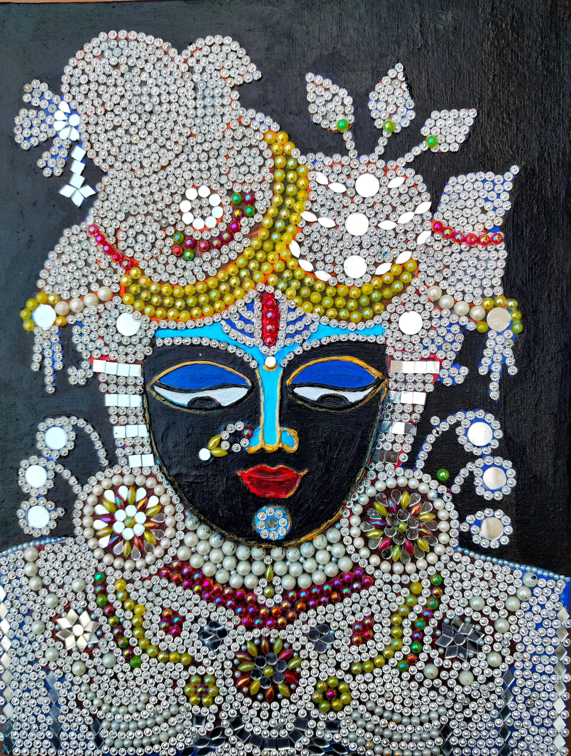 This piece blends traditional devotion with detailed craftsmanship, bringing divine beauty to life through texture and sparkle.