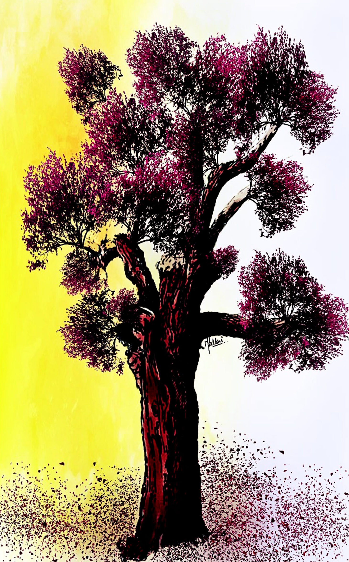 What makes this painting unique is its interactive essence—how it appears changes with the viewer’s mood. In moments of joy, the tree blooms with beauty and warmth; in sadness, it may seem ordinary and still.